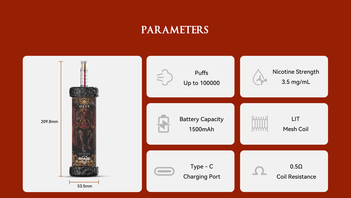 With a 1500mAh rechargeable battery, USB‑C charging, and premium hardware throughout, the HookaLit PLUS 100K offers long‑lasting performance that truly delivers. Elevate your experience and enjoy innovative design with every puff.