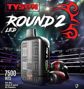 Tyson 2.0 ROUND-2 Heavy Weight Disposable is a powerhouse designed for an exceptional vaping experience. With an impressive 7500 puffs and a generous 16mL of e-liquid, this device offers an extended journey into rich flavors and satisfying vapor. Each puff delivers a potent 50mg of nicotine, providing a strong and smooth hit for those who seek intensity in their vaping sessions. The ROUND-2 Heavy Weight Disposable ensures a hassle-free experience with no need for refills or recharging. Featuring a sleek and compact design, Tyson 2.0 is perfect for on-the-go convenience, easily fitting into your pocket or bag.